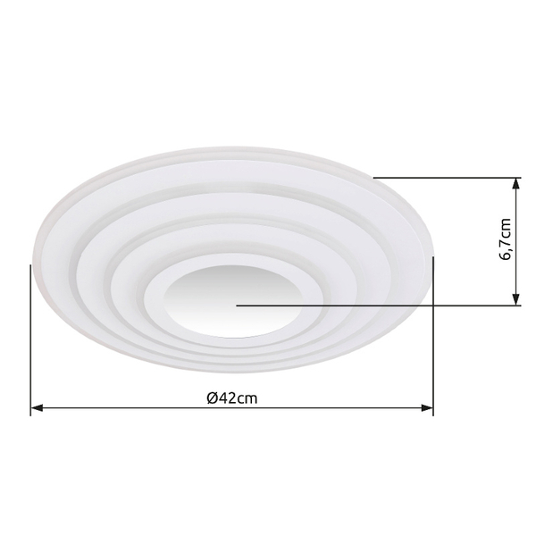 Stropné svietidlo, kov biely, akryl biely, plast pochrómovaný 3D efekt, stmievateľné, niekoľko úrovní pomocou nástenného vypínača,SmartLight, aplikácia, pamäť, diaľ.ovládanie, ø: 400 mm, V: 70 mm, vrátane LED 40W 230V, výstup 300-2900lm, 2700-6500K.